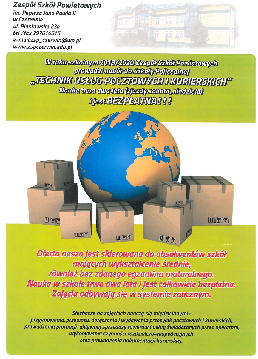 Tadeusz Tyszka Informacje 19 czerwiec 2019 Oferta 2019/2020 Zespołu Szkół Powiatowych w Czerwinie Drukuj E-mail