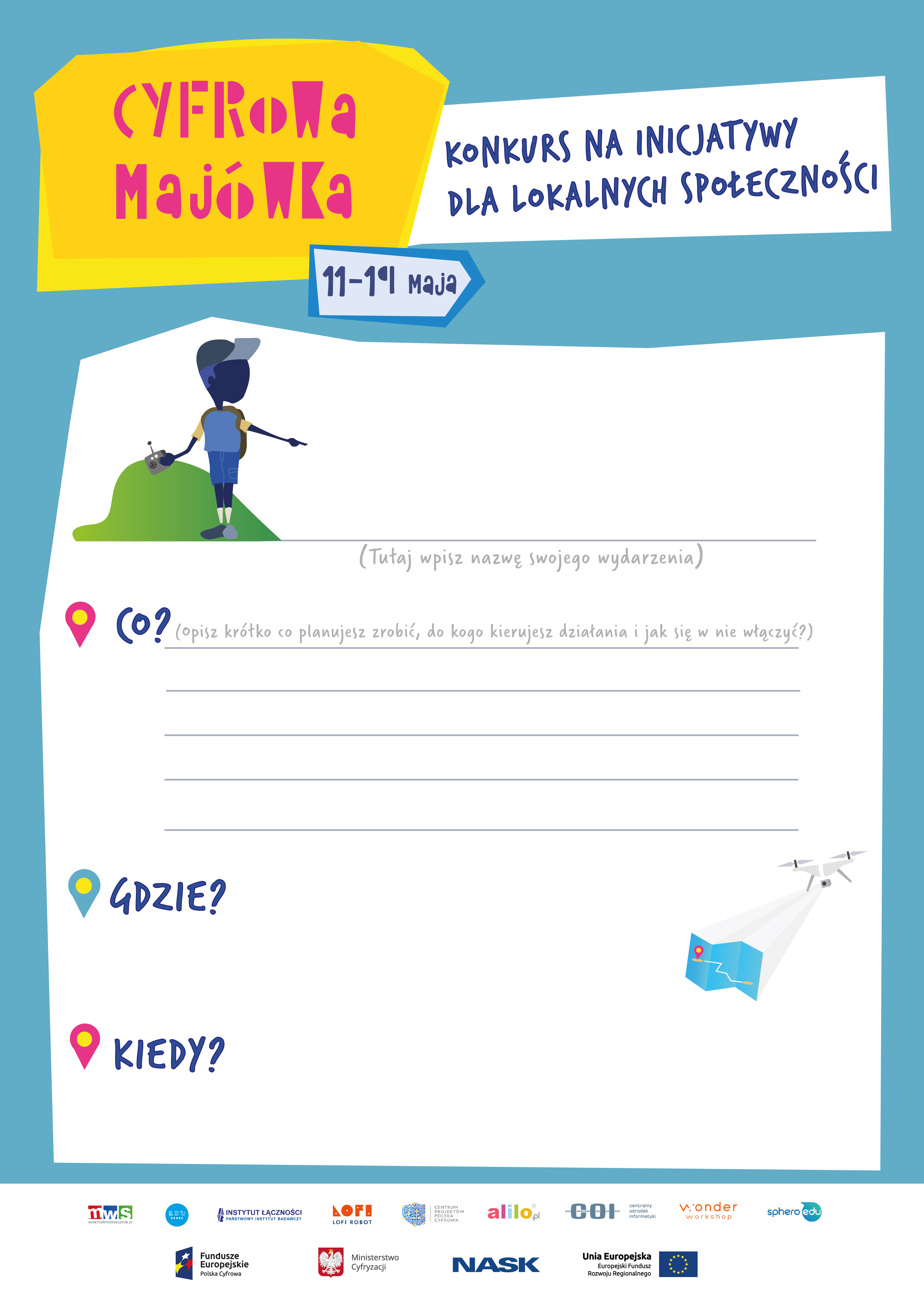 Zależy nam, aby „Cyfrowa majówka” przede wszystkim była dobrą zabawą i fajnym sposobem na spędzenie wolnego czasu. Chcemy docenić najciekawsze inicjatywy. To na ich organizatorów czekają nagrody. Do naszego konkursu mogą się zgłosić wszyscy: całe szkoły, czy gminy, ale i pojedyncze, prywatne osoby. Czekamy na inicjatywy Kół Gospodyń Wiejskich, Klubów Seniora, przedszkoli, bibliotek, organizacji pożytku publicznego, domów kultury, strażaków. Jeśli prowadzisz małą lokalną firmę i chcesz się zaangażować, zapraszamy! Sołtysi i wójtowie również są mile widziani. Nie będziemy dłużej wymieniać – wszyscy czujcie się zaproszeni.