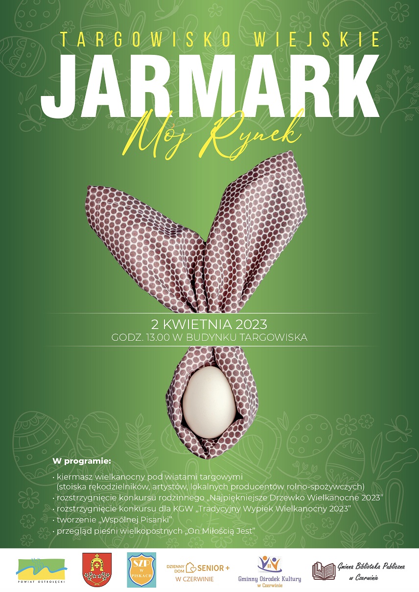 I Czerwiński Jarmark Wielkanocny w Czerwinie godnie rozpoczął obchody Wielkiego Tygodnia przed Wielkanocą. Jarmark odbył się 2 kwietnia 2023 roku, w Niedzielę Palmową, na Targowisku "Mój Rynek". Organizatorami wydarzenia była gmina Czerwin z panem wójtem Grzegorzem Długokęckim na czele, Gminny Ośrodek Kultury w Czerwinie, Szkoła Podstawowa w Piskach, Dom Dzienny Senior + w Czerwinie, Młodzieżowa Rada Gminy Czerwin oraz Gminna Biblioteka Publiczna w Czerwinie. Współorganizatorem konkursów rozstrzygniętych podczas Jarmarków było Starostwo Powiatowe w Ostrołęce. Organizatorzy, zachęceni pozytywnym odbiorem Jarmarku Bożonarodzeniowego, postanowili zorganizować kolejne wydarzenie kulturalno - społeczne, tym razem w okresie poprzedzającym Święta Wielkanocne, co nadało mu religijny podniosły charakter. Wydarzenie bardzo licznie zgromadziło mieszkańców gminy Czerwin, gmin ościennych i powiatu ostrołęckiego.